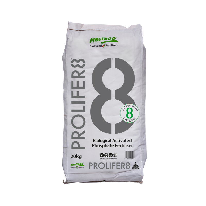 PROLIFER8 is suitable across a wide range of applications including pasture, crop and turf. Application rates will range from 100-300kg/ha.